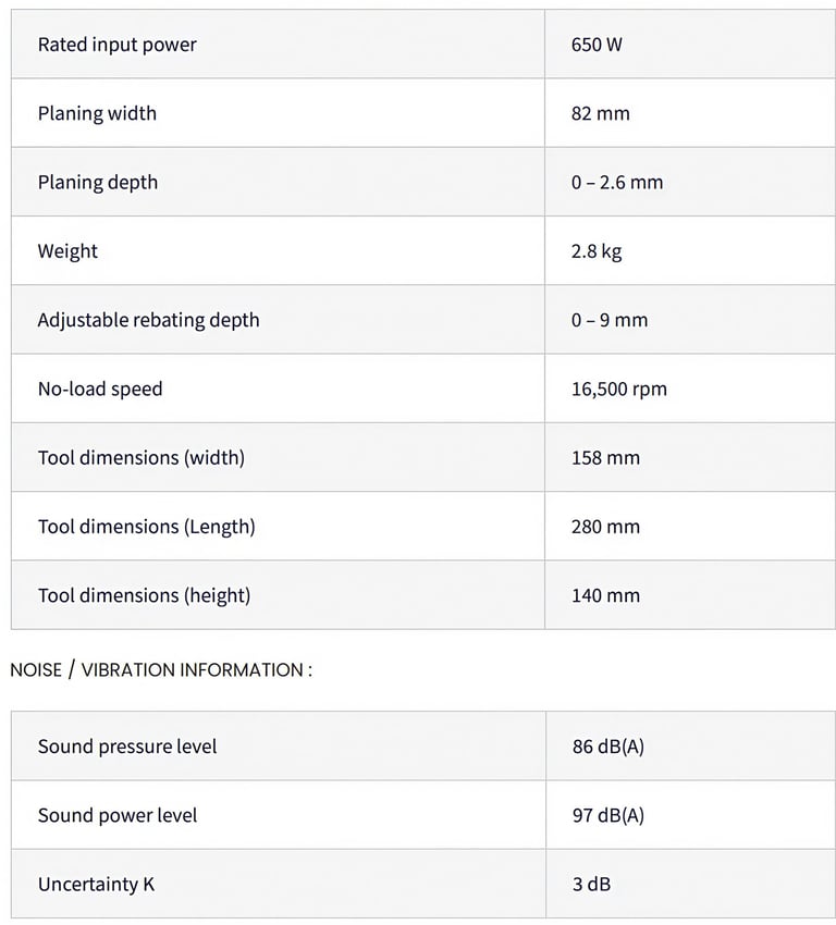 Powerful 650 W motor provides fast planning speed