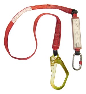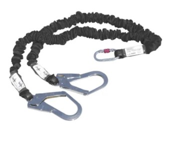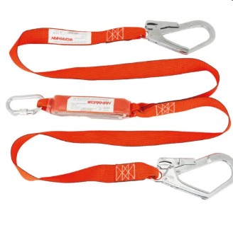 Double Lanyard shock and energy absorber with two scaffolding hooks and One carabiner hook for attaching to harness