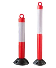 LDPE post and black PVC base. Height 115 cms with 25 cms reflective. This post is used to hang chains and block a space, The reflective tape has high visibility. Removable bollard post twist-locks into base.